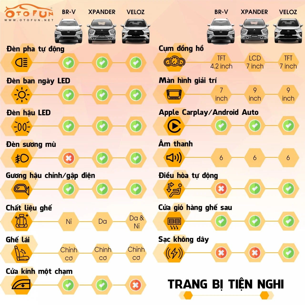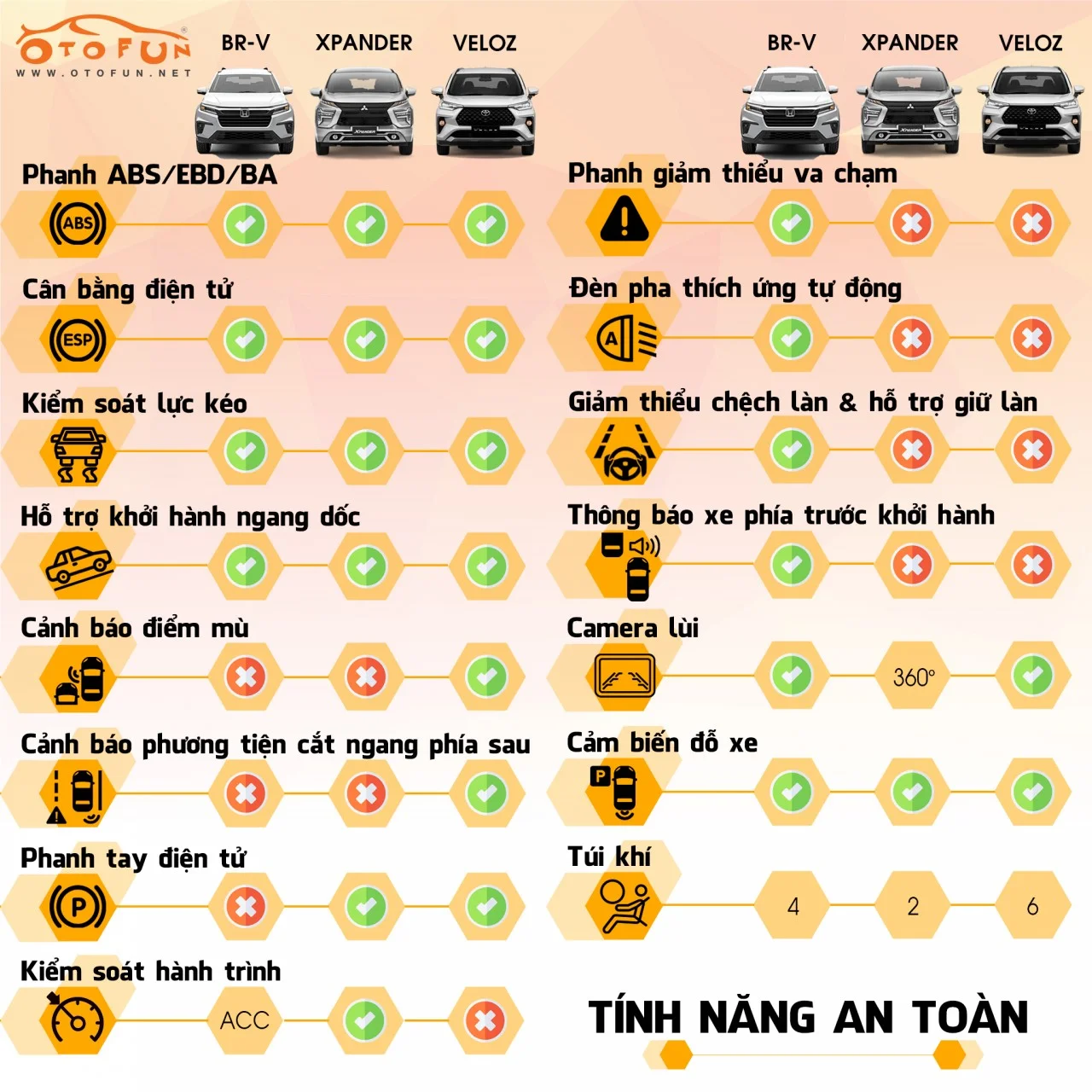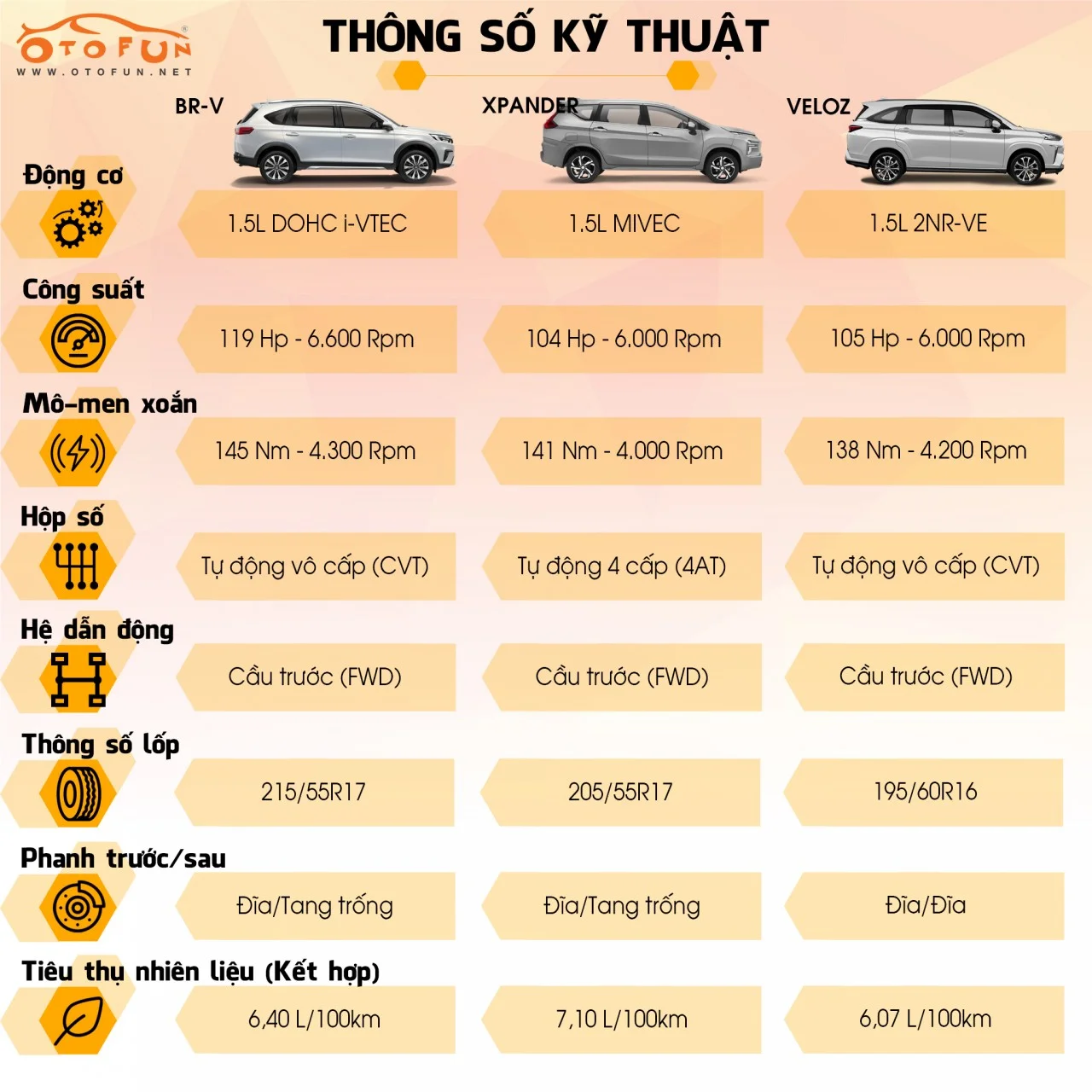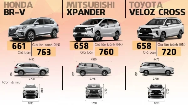 So sánh Honda BR-V với Mitsubishi Xpander và Toyota Veloz Cross